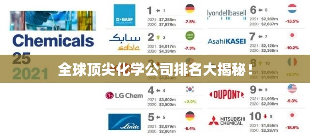 化学工业是支撑全球制造业的重要支柱之一,涉及众多领域,如医药、农业、能源等,随着全球经济的发展,化学行业也在不断进步,许多化学公司因此崭露头角,本文将介绍全球主要化学公司的排名,以便读者更好地了解该行业的竞争格局。