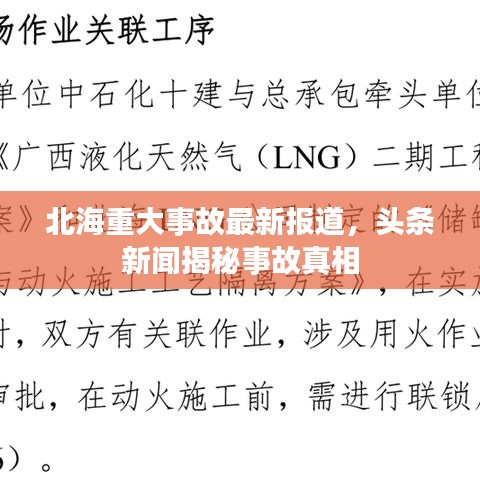 北海发生了一起备受关注的事故,引起了社会各界的广泛讨论和关注,本文将围绕这一事件展开,为读者详细报道事故的最新消息、原因及后续处理等情况。
